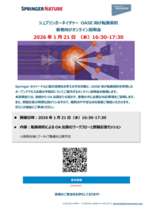 Springer Nature刊行ジャーナルへの投稿をご検討いただいている方を対象に、Springer Nature転換契約・著者向けオンライン説明会が開催されます。