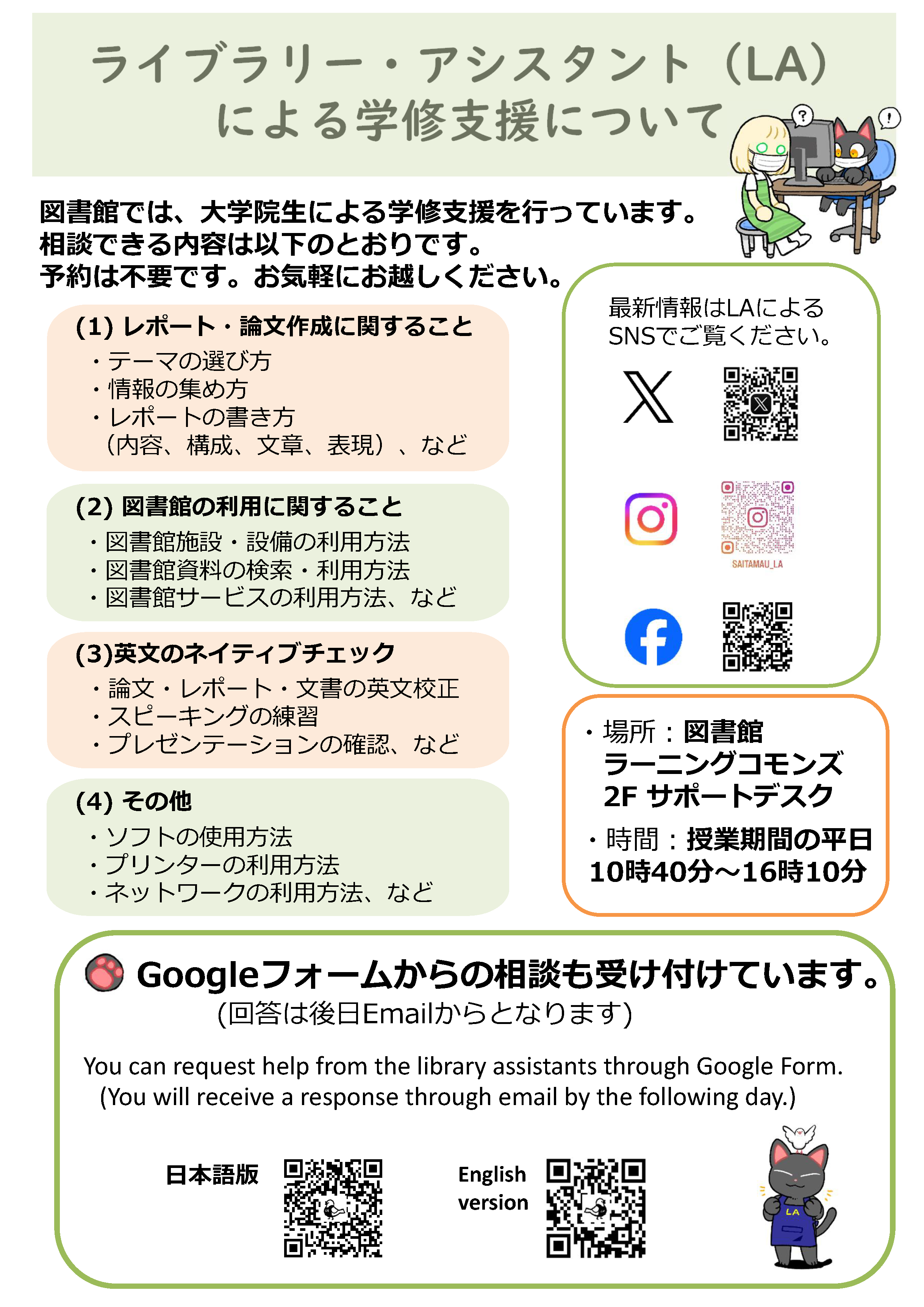 ライブラリー・アシスタントによるX (旧Twitter)ならびにFacebookInstagramもあります。